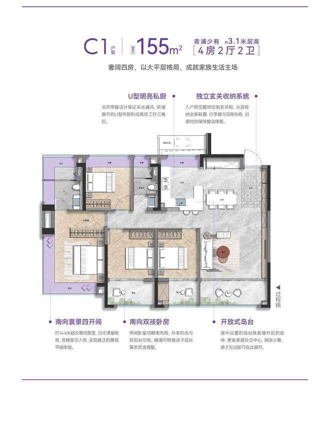 项目南侧即为滨河湿地,北侧是宽约100米的新城绿环带,业主推窗即见绿,在城市中就能享受自然的松弛感。