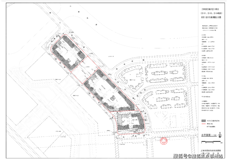 22-01地块容积率3.0,占地面积1.1万平方米,总建筑面积5万平方米,包括4栋住宅楼、2栋商业;