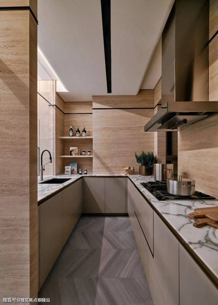 中西厨以玻璃门作为区隔,满足多元化的生活场景。可开可合,更贴近当代都市生活。