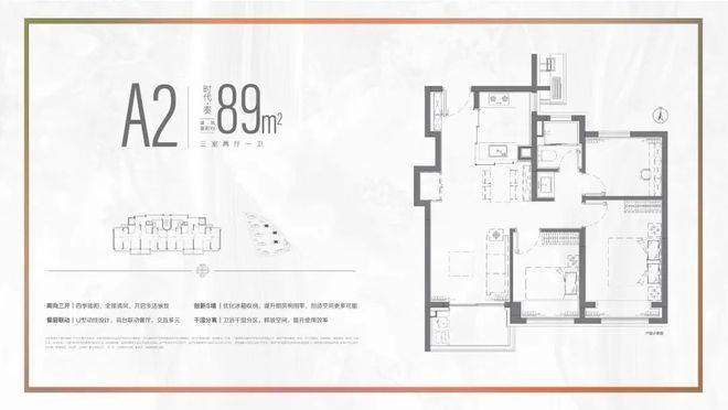 89㎡三房:三开间朝南,U形厨房,总价450万起。