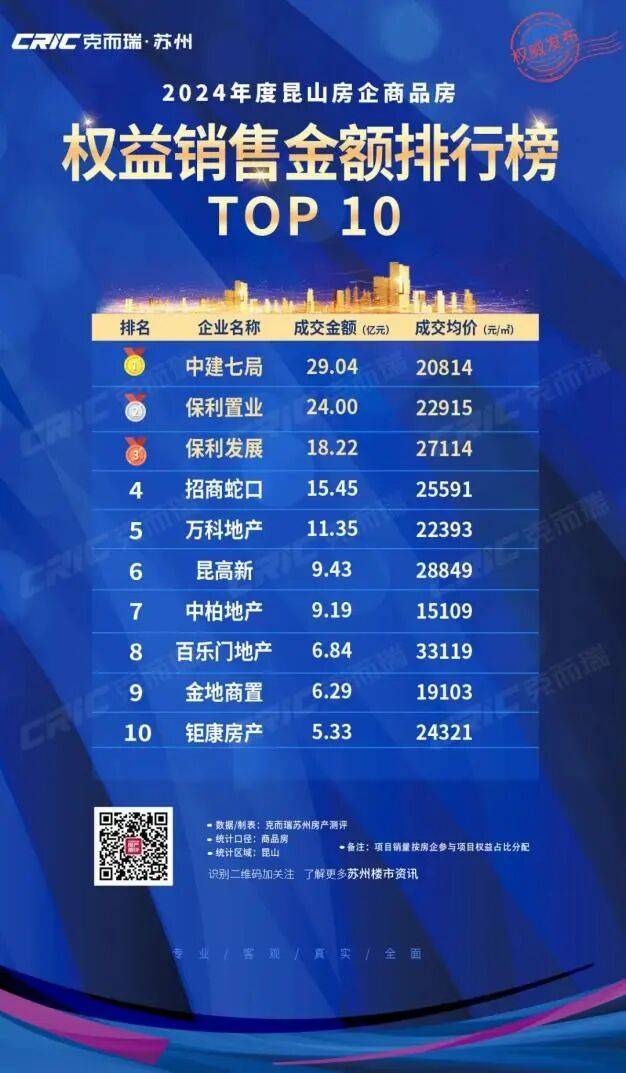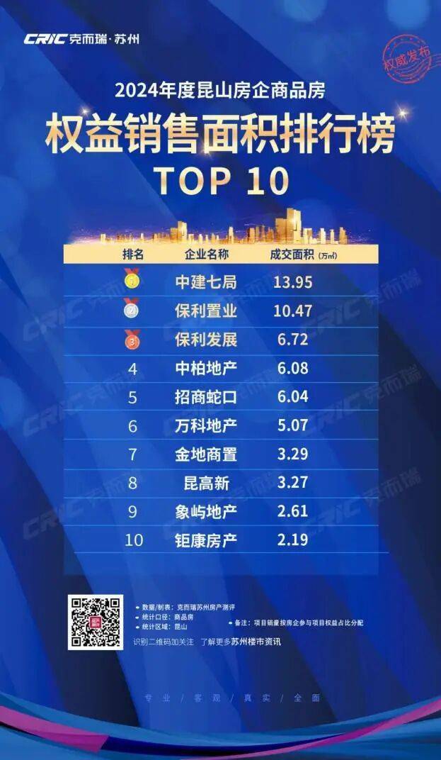 那么,什么样的产品更具“确定性”呢?市场已经给出了答案。2024年昆山房企商品房权益销售榜单中,中建七局地产集团荣膺金额、面积“双冠王”。