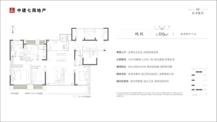 以建面约170㎡户型为例。以双开门电梯来实现类似一梯一户的设计,让出入动线更流畅。独立入户空间,打破了常规的密闭空间,创造性地打造了一个充满情景化的全明光厅,兼具收纳、观景等多功能,让空间向外延伸。