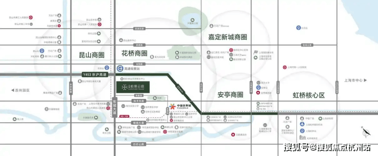 双轨交汇优势:项目紧邻苏州地铁S1号线(规划中)与上海地铁11号线花桥站(4.4公里),未来可实现“双城生活”一键切换。自驾方面,距京沪高速花桥出口仅1.5公里,25min直达上海虹桥商务区,通勤效率显著提升。