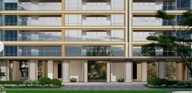 还有挑檐设计的架空层泛会所、地下车马院、艺术长廊,以及贝金米黄石材、水纹玻璃、海浪灰花岗岩、约12m通高落地玻璃……