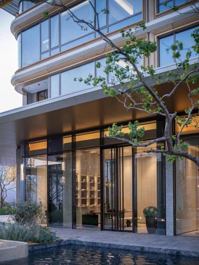 又如,园林景观方面融合各种类型的植被、观景会客厅、大面积镜面水景、曲苑回廊等,打造难得一见的诗意园境。