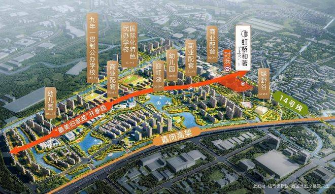 计划引入民办学校(国际化特色办学)、九年一贯制教育,规划打造10公顷迎虹湖、带主题滨水公园的15公顷绿野谷公园等配套。将以“三年有样、五年出形、八年成城”的速度,构建“生产、生活、生态”融合发展的高品质社区。