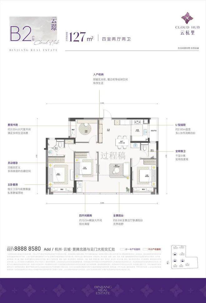 云雾森境,沉浸都市微度假。萃取精英生活底蕴,打造一座悬浮于都市之上的立体生态绿洲,以「一轴・五境・七景」的叙事性布局,覆盖从归家到休闲的全场景需求。项目作为云城首个好房子试点,匠筑超 2000㎡雅奢泛会所,涵盖恒温泳池、健身房、篮球场、瑜伽室、私宴厅、女王厅等高阶配套,同时践行「儿童友好社区」理念,构建室内外联动的「双乐园」探索系统,敬献全龄乐活的理想生活。滨江西站云杭里售楼处电话:400-9688-923