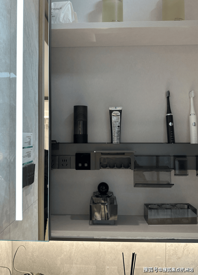 主卧卫生间镜柜,甚至交付有 牙刷消毒系统