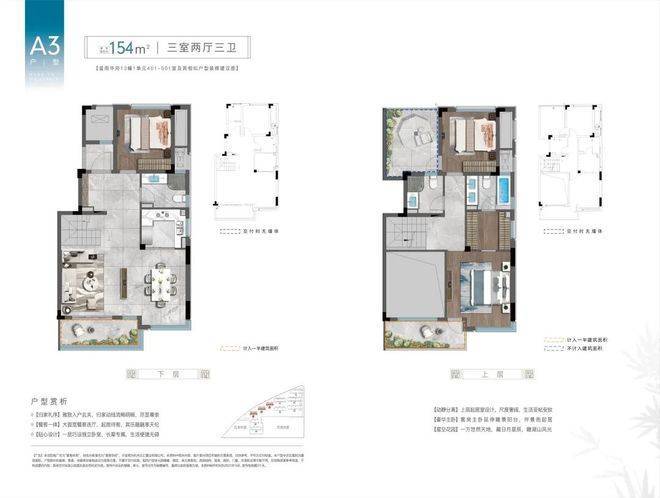 中叠2-3层约154方:三室两厅三卫【可改造】