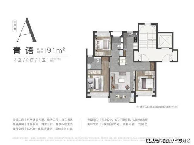 【建面91㎡3居】298.0-330.0万-分布于11幢15幢,1梯2户,层高3.00米,总楼层10F