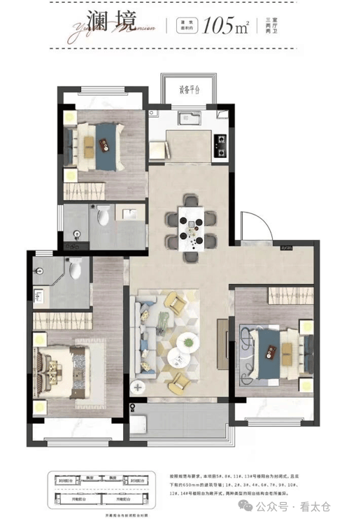 其中南向大阳台,配合所处楼栋位置,给予室内充足的阳光与清风;近10米三开间朝南的飞机户型,在市场上属于稀少产品,让同类型的户型尺寸很难超越;一体化餐客厅格局,保证各功能区域独立又共享,空间的开放创造了无遮挡的生活视野,让整个公区更开阔,待客排面拉满;套房主卧,配置独立卫浴兼顾便利性,大限度地将闲适美学赋予生活,为居者匠筑静谧分界的自在空间。