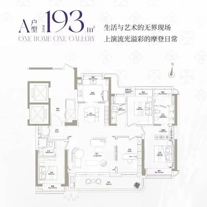 建面约193m²户型,主力总价3400万左右