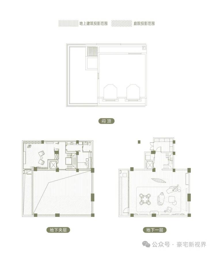 空间布局:地上三层+地下两层+庭院+露台