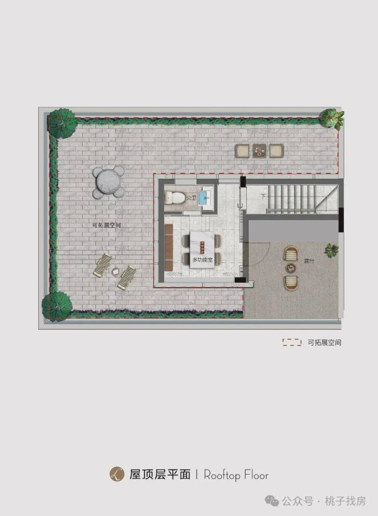 上叠:以195㎡的五房四卫,除了二层规划了朝北露台外,三层的空中阁楼,从多功能空间推门而出,竟然是一个“270°环幕式”生活露台,面积有70㎡左右。它可以是你抽离纷杂尘世的秘密花园,也可以是朋友聚会的快乐之地。