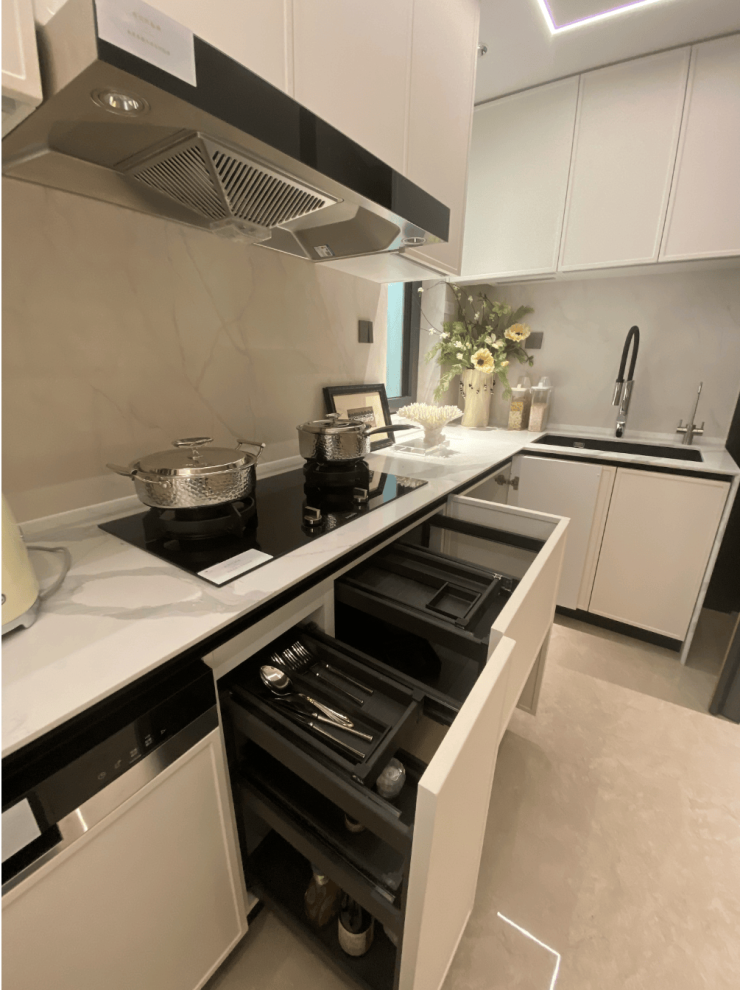 柜门白色烤漆面板,抽屉分区也都是帮大家细致划分,如多功能调味拉篮+谷物抽+碗碟拉篮等。岛台上配置可升降插座,铝合金抽屉,石材背景板的金属开放格实用性很强。徐汇海上清和玺售楼处电话:400-9678-224欢迎咨询热线电话,徐汇海上清和玺【24小时预约看房热线】徐汇海上清和玺售楼处电话:400-9678-224【售楼处电话/地址】徐汇海上清和玺售楼处电话:400-9678-224【开发商认证】