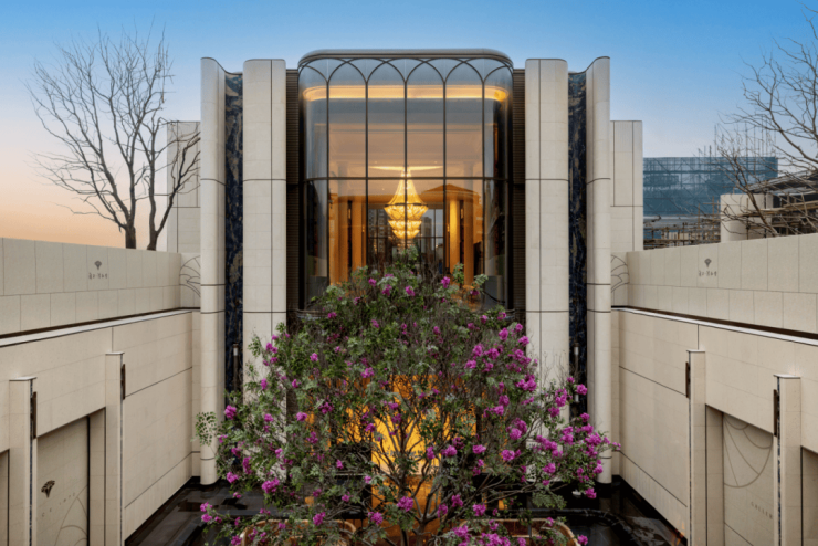 海派光厅之外归家迎宾树木更是由设计师辗转多个城市才寻到的、树龄超60年的福木“紫薇”。