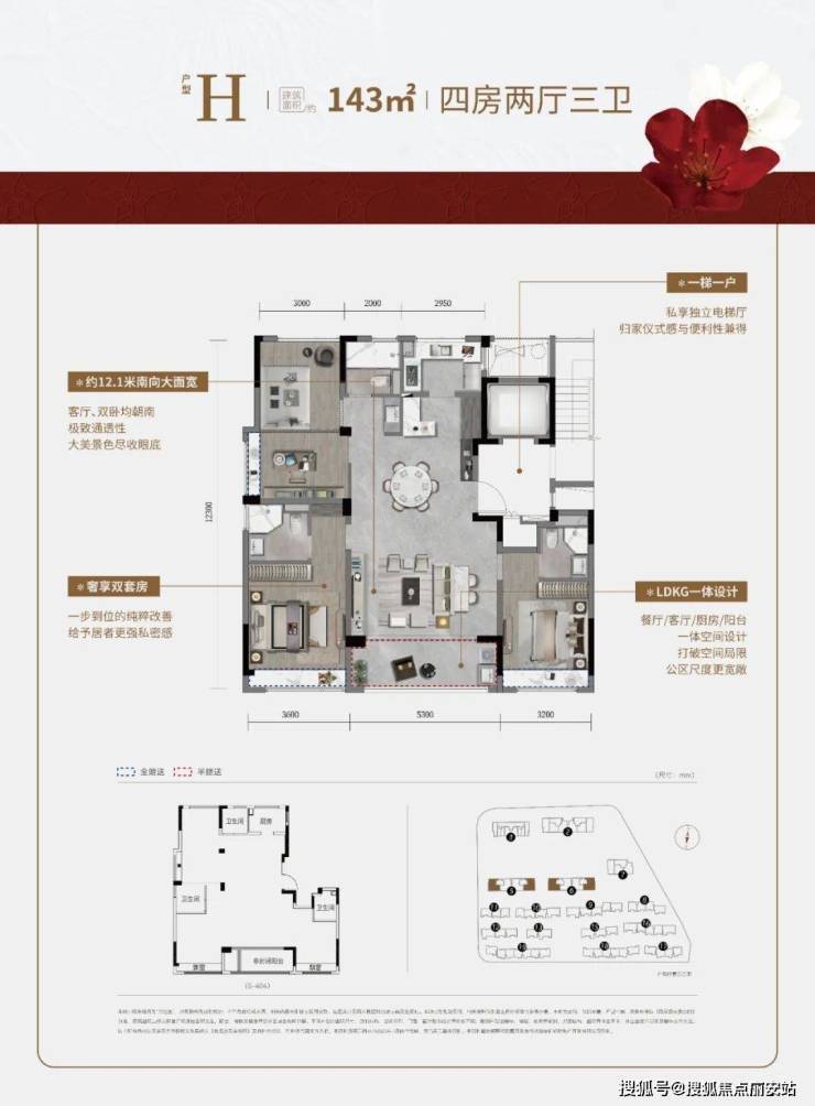 户型面积:175-298㎡家族大宅,主力4-5室(含双主卧设计),带独立庭院3