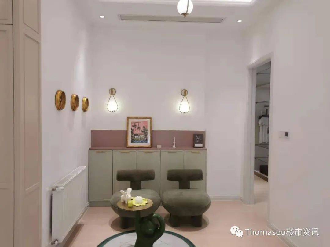 客厅:整个客厅与餐厅直面三林公园,在客厅通过落地玻璃窗可以270度观赏三林公园的四季美景,呼吸自然氧吧给我们带来新鲜空气。