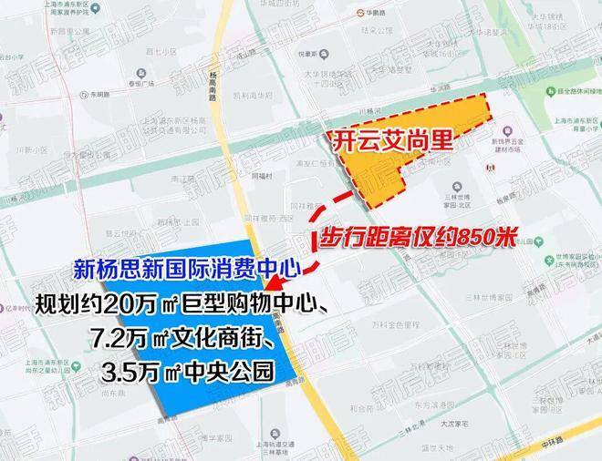 值得一提的是,「开云·艾尚里」举步约850米可至新杨思国际消费中心,总开发规模达到240万平方米,核心区体量120万平方米,集商业、商务、公服为一体,其中商业体量占了三分之一。