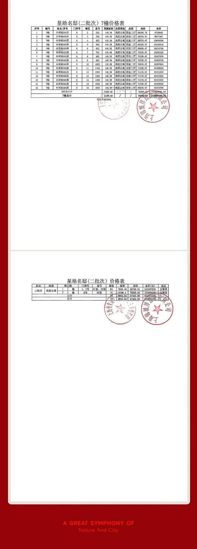 上期一房一价表如下: