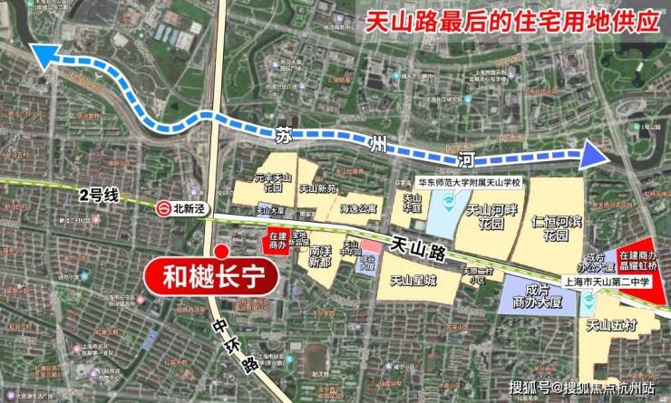 从卫星图看,和樾长宁俨然是天山路两旁最后的住宅用地供应!买进即封顶的绝版资产!