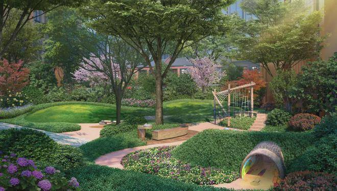 园林景观方面,贝尔高林设计中央主题景观,配合分布式的泛会所打造“公园式度假生活”主题景观,大面积的集中公共绿化,在寸土寸金的内环,实在是奢侈。