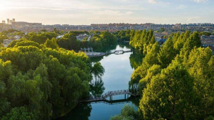 社区内水系蜿蜒,与外部湿地生态呼应,漫步其间,仿佛穿行在“水映绿植”的自然画卷里,比人工园林多了份原生野趣。
