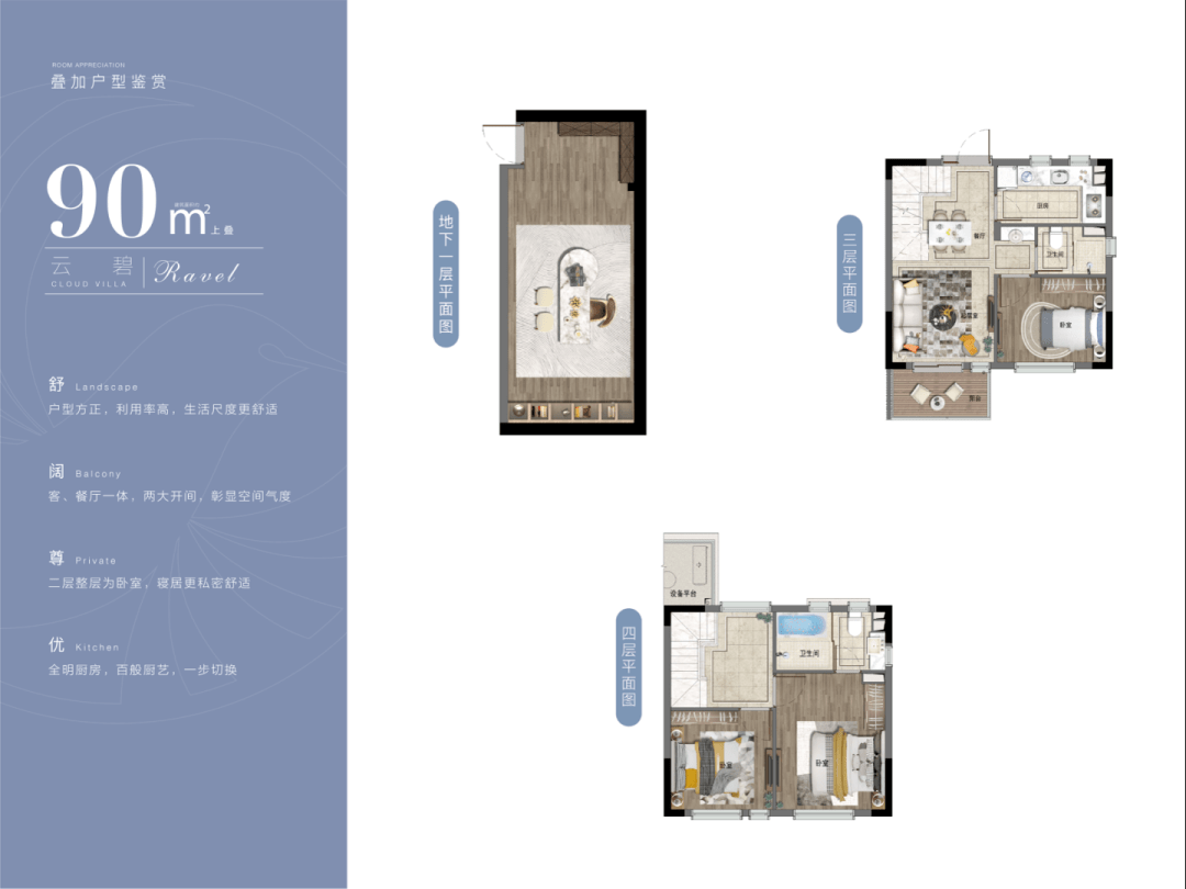 90㎡的上叠、下叠别墅