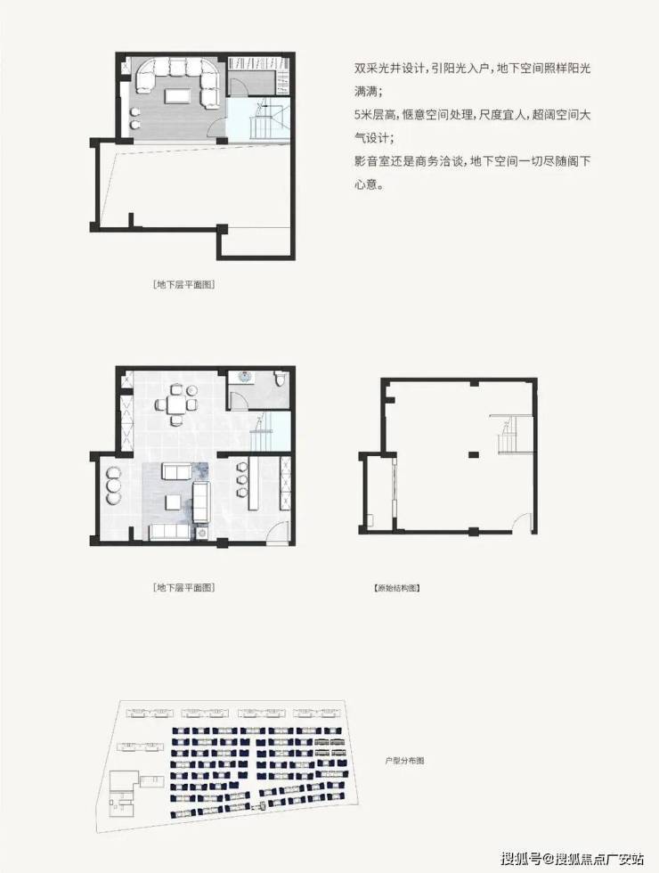 别墅产品:251套,201㎡、218㎡的联及 218㎡的双拼别墅,地下一层、地上三层。地下室层高 5米。花园20-80平不等