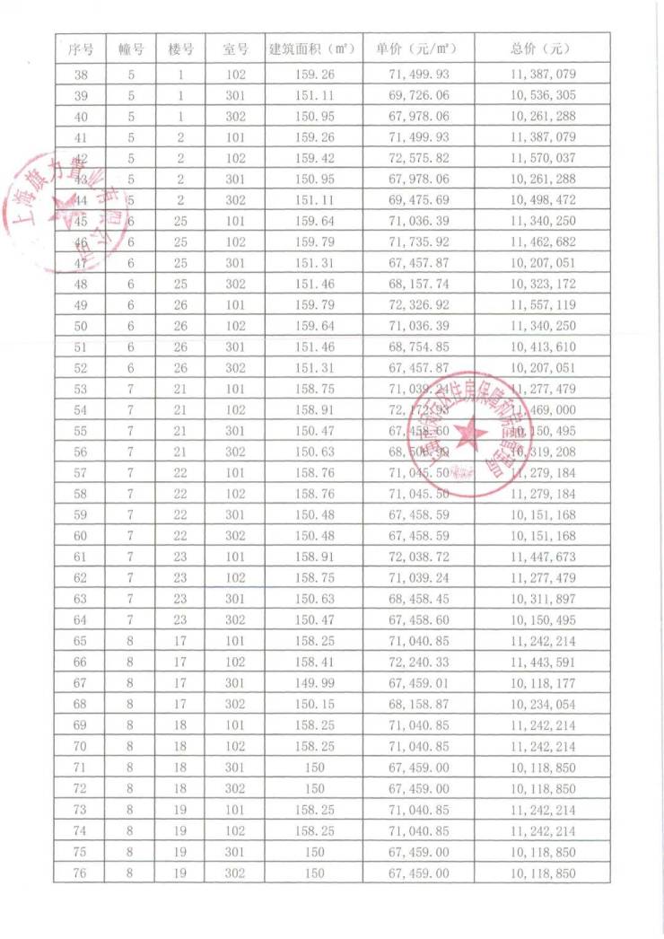 崇明某触发积分项目部分一房一价表