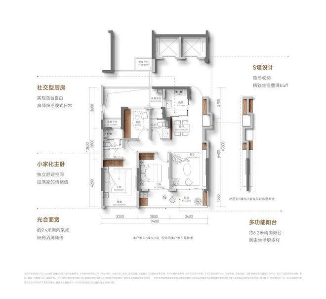 【光合面宽】约9.4米南向采光,阳光洒满角落
