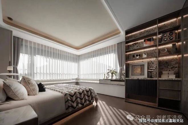 在传统的四房领域,2房朝北几乎是逃不掉的问题,但在招商中旅·观境,做到了三间卧室朝南,并且主卧拥有一个约270度的主卧无柱转角飘窗