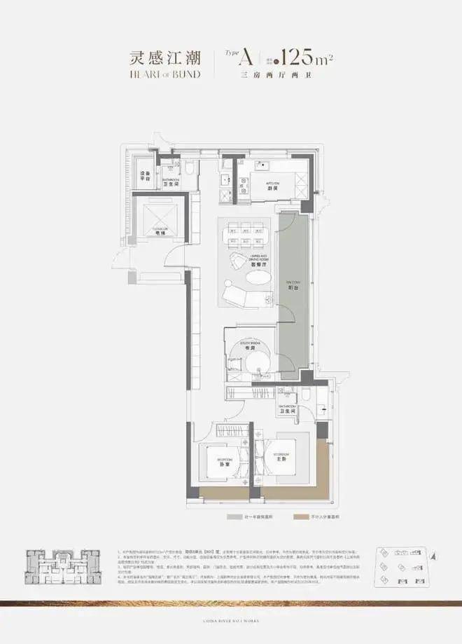 华润雲启滨江营销中心电话: 400-9939-964华润云启滨江营销中心电话: 400-9939-964建面约125㎡户型示意图,仅供参考