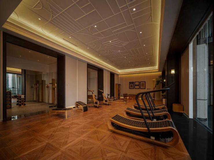 约2000㎡下沉式会所全实景呈现,围绕整个东湖光厅,分布了各个功能空间:星空顶恒温泳池 、私宴厅、3D室内高尔夫球室、WaterRower品牌健身房 、瑜伽室等等,每一处都是对生活美学的极致诠释: