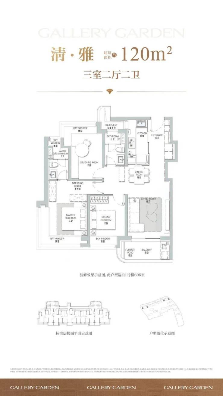 建面约120㎡3房2厅2卫户型