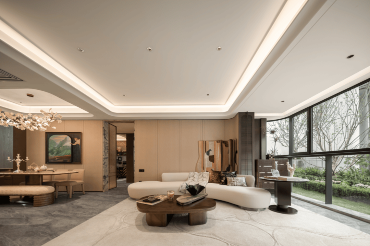 不计成本打造大量定制化米黄色石材饰面、奢玉、奢石搭配海派金属的装饰,细节与调性堪称板块标杆!