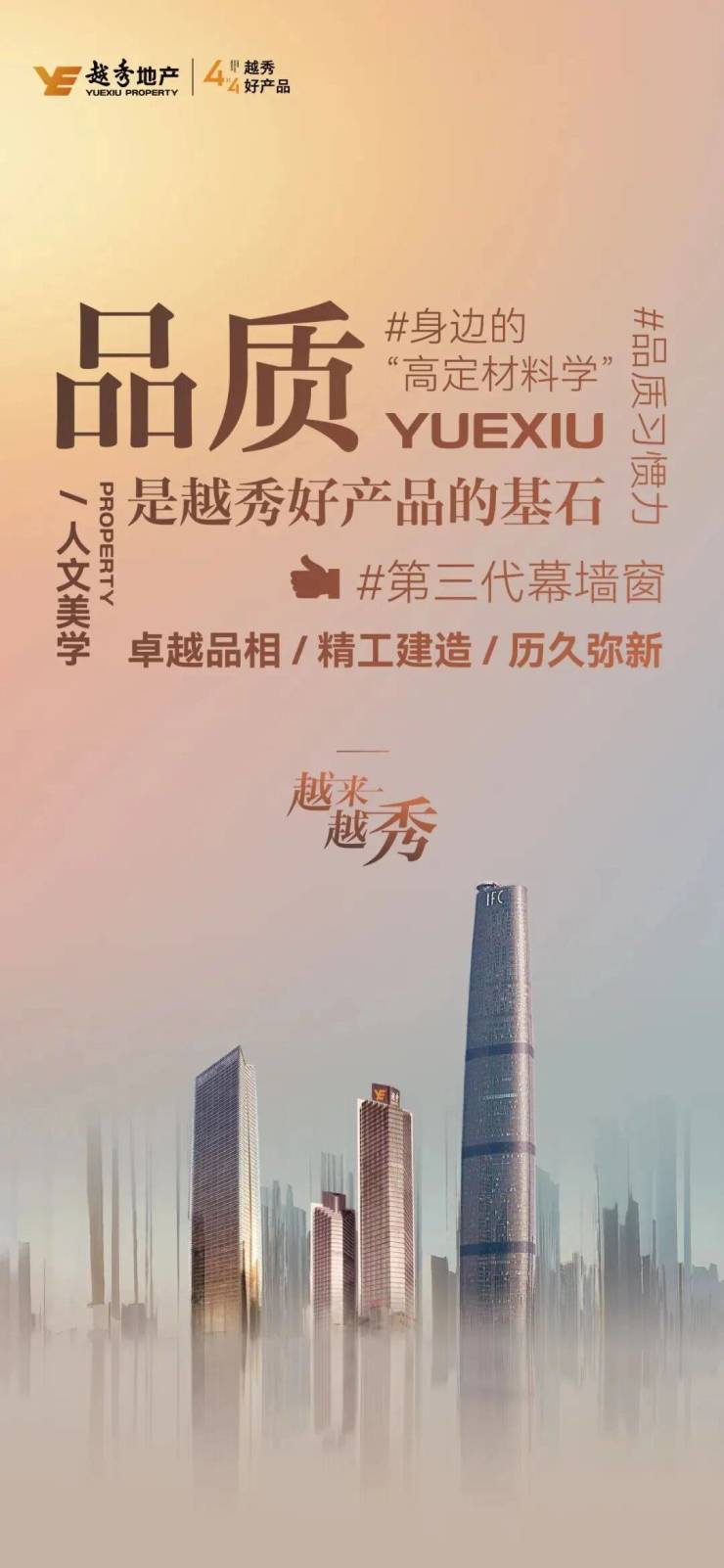 越秀地产,千亿龙头国企,实力筑就广州IFC、琶洲南TOD、越秀·和樾府等城市地标。秉持“品质、温度、智慧、成长”四大核心,以“4x4好产品理念”锻造硬核实力的“六边形战士”。