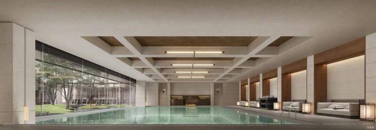 会所由徐汇滨江领邸玖序原班设计团队操刀,涵盖健身、泳池、私宴、茶室、下沉庭院等多元功能,满足不同生活需求。