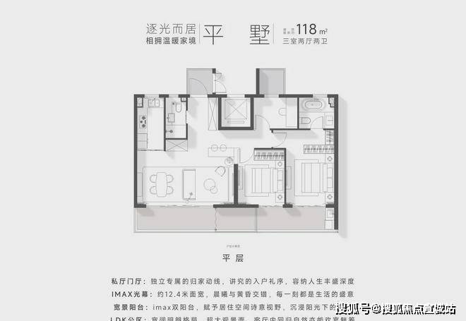 建筑风格:公建化立面、宽幕窗景、IMAX观景阳台