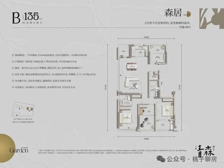 户型面积:约127-135-138㎡森系华宅