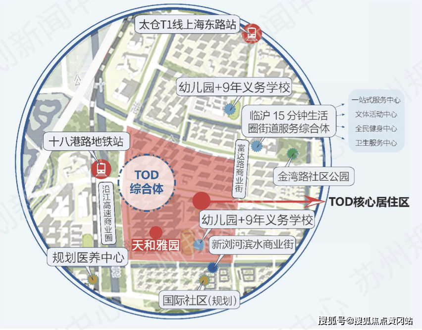 天和雅园择址太仓发展重心区域——娄江新城十八港路与中市路交汇口附近,对面即是嘉闵线站点(嘉闵线时速设计约160km/h),往北一公里即是沪太快线朝阳站,一站直达上海;