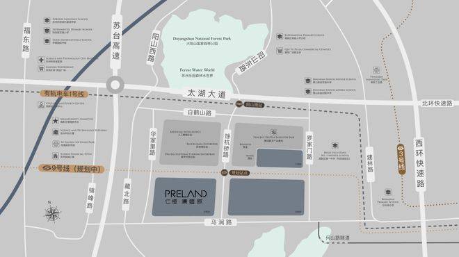 全龄教育资源:苏州外国语学校附属阳山幼儿园/苏州高新区实验小学分校秦馀小学校/苏州高新区景山实验初级中学/苏州高新区第一中学科技城校区;