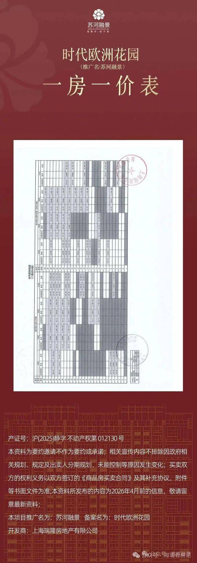 最新消息,一房一价表发布!苏州河旁「苏河融景」明天认购!建面约94-280㎡房源,约12.2万/㎡!