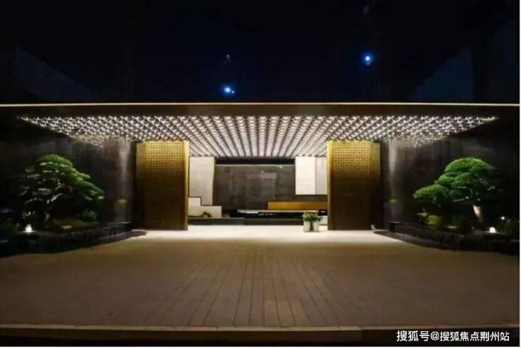 95米长的西大门长廊率先映入眼帘,乱纹黄古铜饰面与深色奢石大理石碰撞,顶部金属铝板立体切割,彰显归家仪式感!大门内侧,照壁以中国黑石材与青白石组合,延续空间礼序!