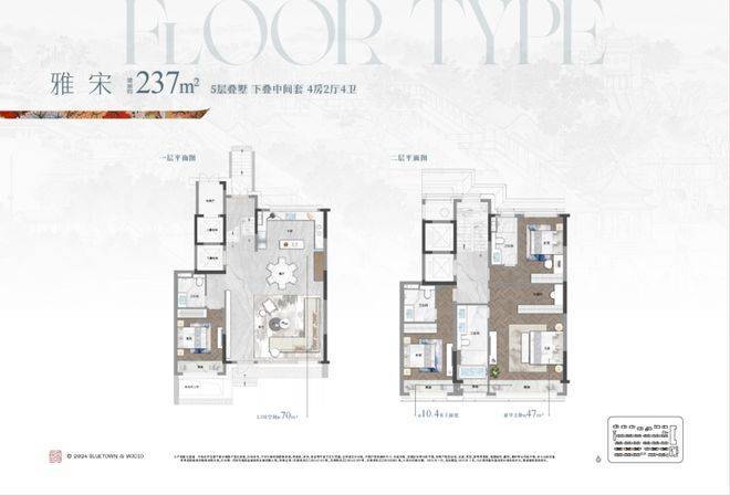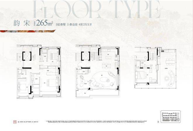 项目主力建面约168-280㎡的精装叠墅以及全精装修大平层,一层一厅、一叠双院、一叠双露台、全系套房、大品牌精装交付。