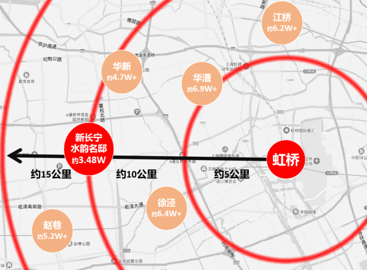 从新长宁·水韵名邸行驶到崧泽高架入口仅约1.5公里,可以直达虹桥商务区。