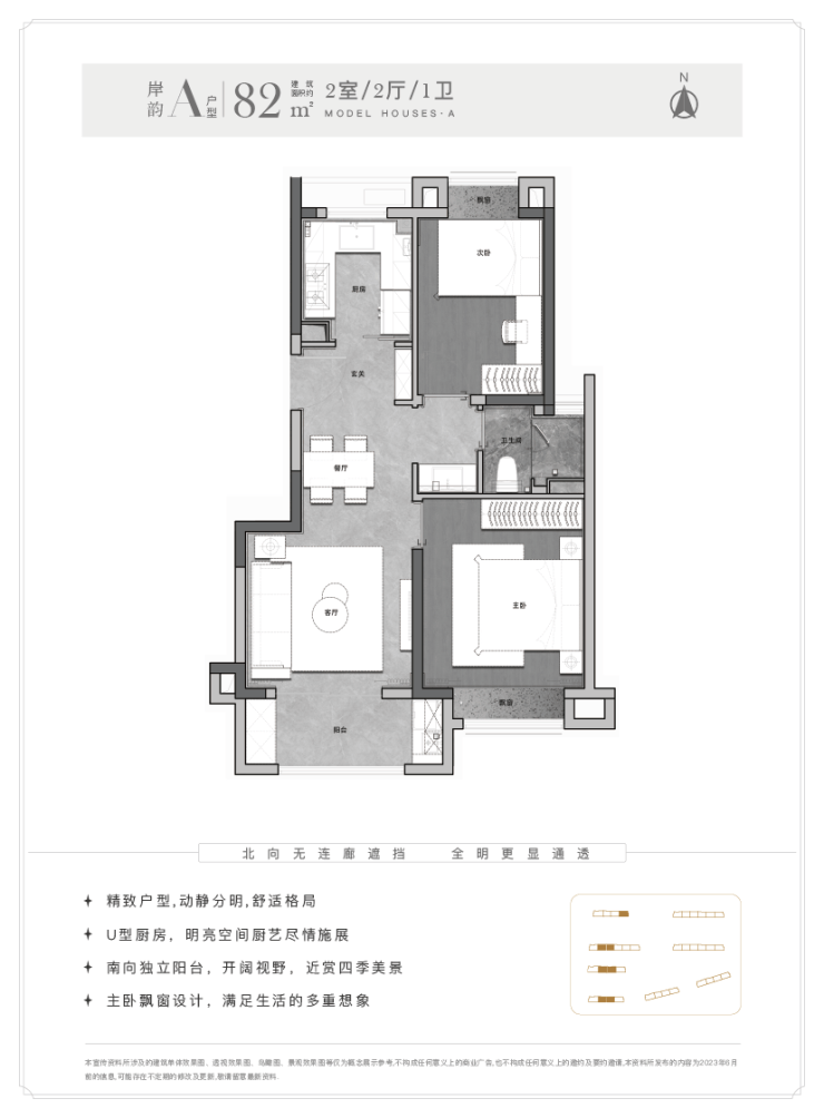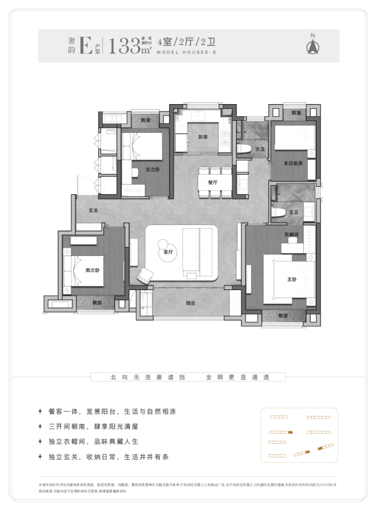 另外这个户型能更好实现南北通透,客厅-餐厅-阳台-厨房一线连通。