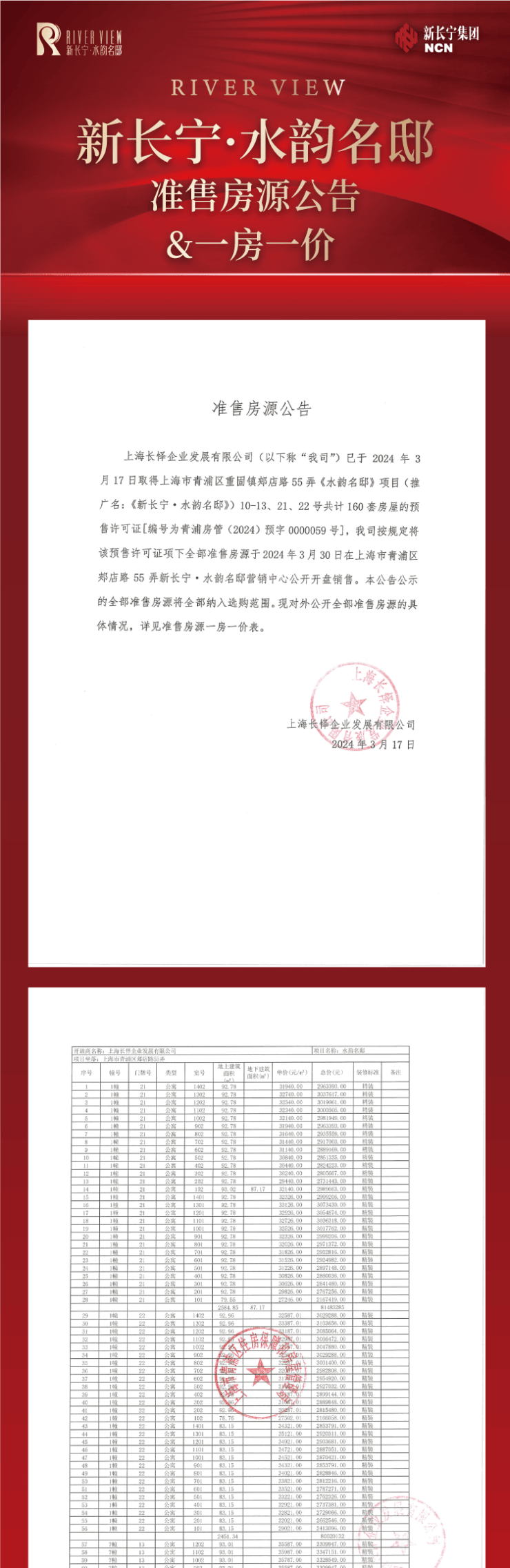 最新消息,地铁口约800米!新长宁·水韵名邸,火爆认购中!大虹桥双轨交,建面约82-133㎡3-4房!总价仅约250万起!最新一房一价表!