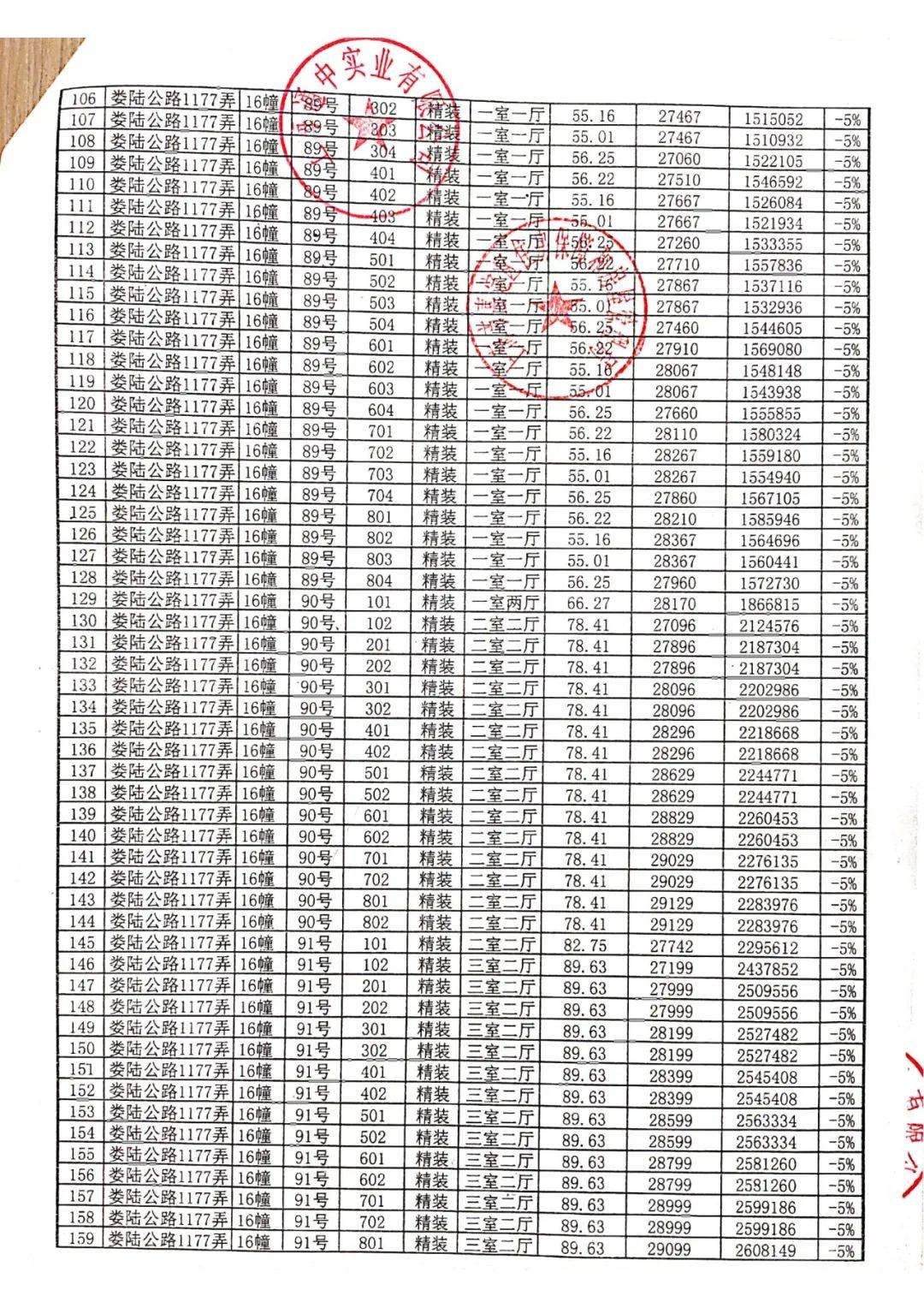 一房一价表: