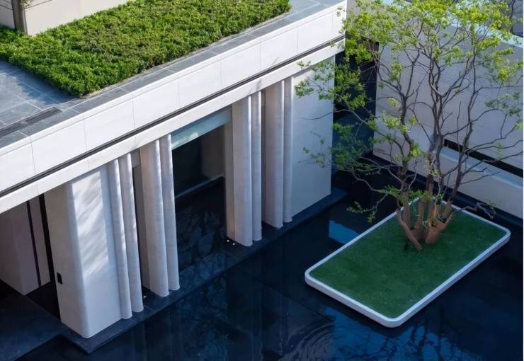 其中的架空层就被好好利用了一把,普通豪宅产品的架空层都为3-3.3米,也就是一层楼的高度。